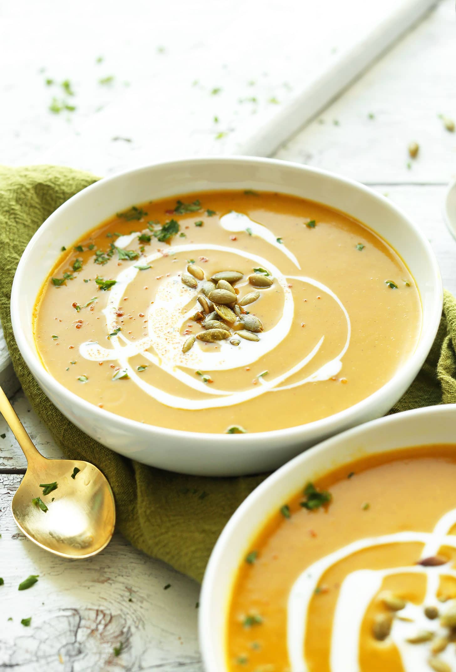 This is Aubrey’s go-to soup for winter time! “I always play around with this recipe depending on what I’m feeling. The coconut oil and milk makes it a bit sweet, which is yummy, but if I’m wanting something heartier I’ll use ghee and bone broth. I also like to add in other veggies like cauliflower, carrots, or potatoes if I have them. I top with cilantro and lots of walnuts to give it a good crunch.”