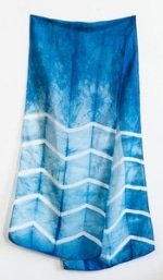 Pictured is one of her silk scarves with a chevron tie dye design.