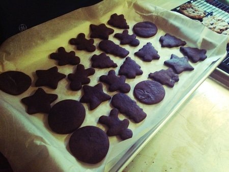 We took to the dough with cookie cutters and an explosion of stars, snowmen, and Christmas trees followed. And circles, which are maybe festive somehow?