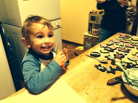Like we mentioned, Hudson had a great time decorating the cookies! He doesn’t eat tons of sweets, but he sure enjoys the artistic side of baking.