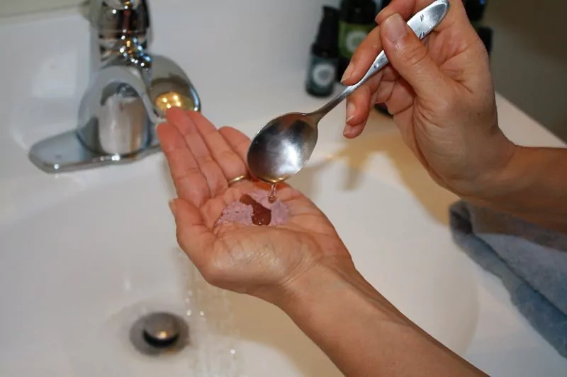 Now here's the part that takes some patience. You want to slowly add water to the powder to form a paste. I like to use a spoon and drip the water in slowly.