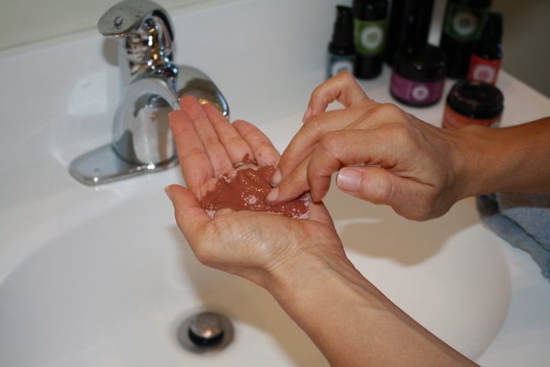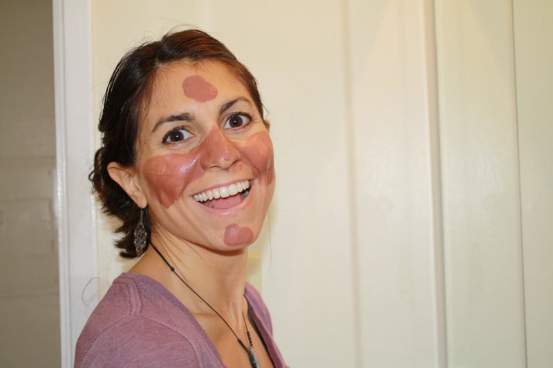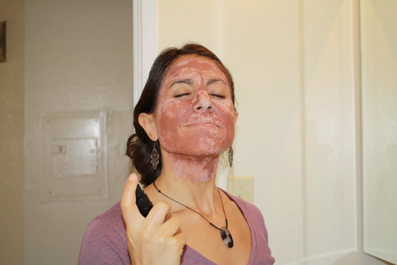 Now that you've mixed it up, it's time to put it on! Slather it all over your face. I like to put it on my neck, too. There's no “best way” to put the mask on. Just have fun with it!