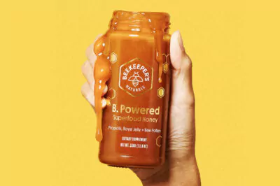 Beekeeper’s Naturals: B-Powered Superfood Honey is pure hive power, equal parts energizing and beautifying. It combines immune-supportive propolis, brain-nourishing, and skin-beautifying royal jelly, energizing bee pollen, and—of course—raw enzymatic honey.